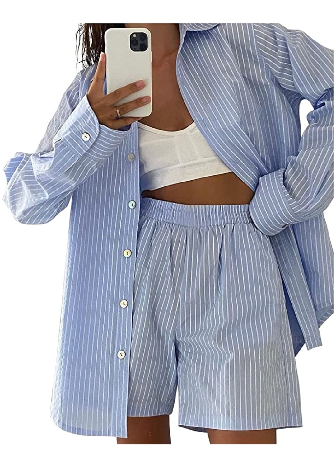 Channel your inner Coastal Grandmother in this striped, button-up set that’s oh-so friendly on the wallet.